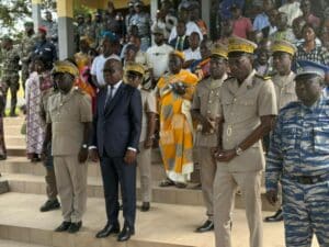 La levée de corps s’est déroulée en présence de nombreuses autorités administratives, politiques et militaires, venues exprimer leur solidarité à la famille éplorée et à la grande famille militaire. Parmi elles, figurait le ministre de la Santé, de l’Hygiène publique et de la Couverture maladie universelle, Pierre N’gou Dimba, fils de la région, qui a tenu à saluer la mémoire d’un jeune officier tombé au service de la Nation.