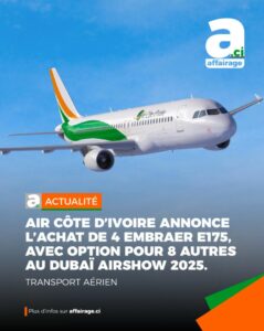 AIP/ Air Côte d’Ivoire acquiert quatre nouveaux Embraer E175 et se prépare à moderniser sa flotte dès 2027.
