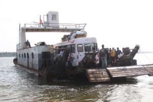 la traversée de la lagune par le bac avant l`inauguration du pont Phillipe Gregoire Yacé