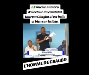 C’est le Blaise Lasm qui vendait la « MIR » de Gbagbo dans le agoras, c’est la même méthode qu’il utilise pour vendre aujourd’hui du faux rêve aux pro Gbagbo pour la collecte des parrainages.