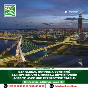 Côte d’Ivoire : S&P (Standard & Poor) maintient la notation BB/B » ; notant une croissance robuste et une dette mieux maîtrisée.