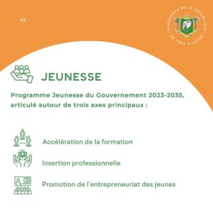 Le PJ-GOUV 2023-2025, élaboré sur la base du Plan National de Développement 2021-2025, de la feuille de route 2023 du Gouvernement et des conclusions des consultations nationales de la jeunesse, fixe les lignes directrices de l’action du Gouvernement pour les jeunes ivoiriens 9 sur la période 2023-2025.