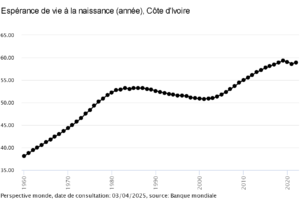 - En 2022 : Espérance de vie en Côte d’Ivoire 58,92 ans.