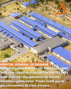 🔴L'hôpital général de Danané d'un coût d'environ 24Md de Fcfa avec une capacité d'accueil de 100 lits sera livré avec des équipements de pointe . pic.twitter.com/KrP5Y420w3