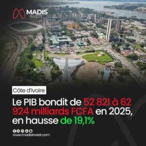 Côte d’Ivoire : le PIB bondit de 52 821 à 62 924 milliards FCFA en 2025, en hausse de 19,1%