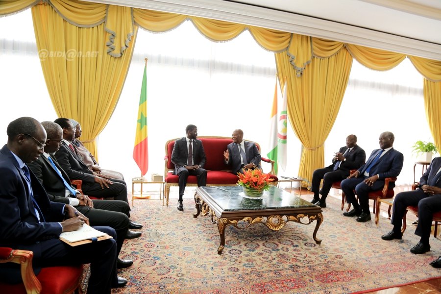 Le Président Bassirou Diomaye FAYE a, en outre, affirmé que le Sénégal et la Côte d’Ivoire ont un rôle important à jouer dans la consolidation des acquis en matière d’intégration de notre espace communautaire, malgré les turbulences que connaît la zone.