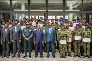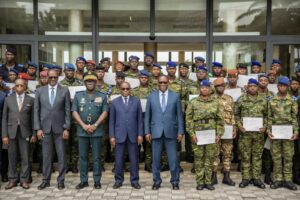 Le Ministre d’Etat, Ministre de la Défense *Téné Birahima Ouattara* a présidé, la cérémonie de remise des certificats de fin de formation à 155, à l’Hôtel des Armées, à l’État-major Général des Armées au Plateau en compagnie du ministre de l’Enseignement technique, de la Formation professionnelle et de l’Apprentissage, N’Guessan Koffi; les hauts responsables de l’armée avec les militaires certifiés.