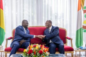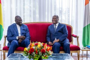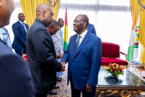 Les deux Chefs d’État ont évoqué le renforcement des relations séculaires d’amitié et de coopération entre la Côte d’Ivoire et la Guinée, notamment dans les domaines économique et commercial, ainsi que les sujets régionaux, en particulier la situation sécuritaire et politique dans les pays du Sahel, et la nécessité de consolider l’intégration économique régionale pour le bien-être de nos populations.
