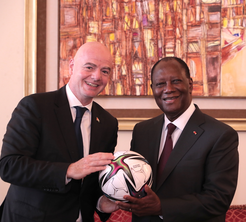 Le Président de la République, S.E.M. Alassane OUATTARA, s’est entretenu, ce mardi 4 mai 2021, avec les Présidents Gianni INFANTINO de la FIFA et Patrice MOTSEPE de la CAF.
