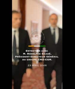 Le Président de la République, Alassane Ouattara, a reçu ce jeudi 23 avril 2026 à Abidjan le PDG du groupe CMA-CGM, Rodolphe Saadé, marquant la volonté de l’un des leaders mondiaux du transport maritime d’accompagner durablement le développement économique du pays et de faciliter l’accès aux marchés pour les populations africaines.