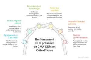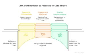 L’inauguration du bureau régional africain de CMA CGM à Abidjan confirme ainsi la position stratégique de la Côte d’Ivoire comme hub logistique et maritime en Afrique de l’Ouest, tout en renforçant son attractivité auprès des investisseurs internationaux.