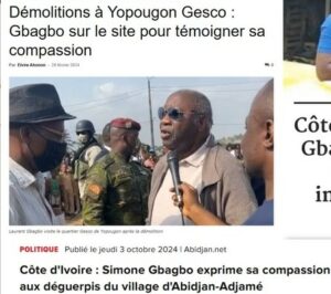 Gbagbo Laurent, Tidjane Thiam, Simone Gbagbo Ehivet, Blé la machette, ont enfin enfin leurs morts à Mossikro en ce 21 Mai 2025!. Autant ils ont été indigné lorsque les structure de l’état avaient initiés le déguerpissement dans le but de protéger la vie de nos concitoyens, les vautours buveurs de sang humain sont allés leur demander de ne pas exécuter la demande de l’état. Alors maintenant qu’ils ont eu le drame qui frappe nos populations qu’ils leur vienne à l’esprit d’allez demander pardon aux populations aujourd’hui frappés par cette catastrophe que l’état de Côte d’Ivoire voulait éviter. On attend de voir le comportement de ces VAUTOURS qui ont l’habitude de surfer sur le malheur des autres afin d’avoir une visibilité par exemple sur les réseaux sociaux.