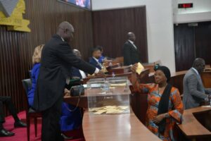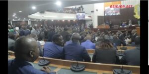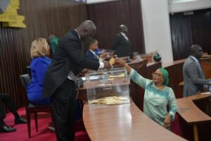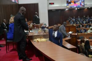 Proclamation des résultats de l’élection du Président de l’assemblée nationale, Monsieur Diawara Mamadou doyen d’âge de l’assemblée nationale de Côte d’Ivoire.