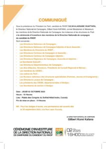 Je félicite l’ensemble des membres de la Direction nationale de campagne du RHDP pour leur investiture et leur souhaite plein succès dans leurs missions.