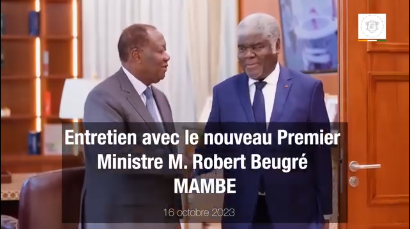 Entretien Présidence de la République avec le nouveau Premier Ministre, Robert Beugré MAMBE, ce lundi 16 octobre 2023